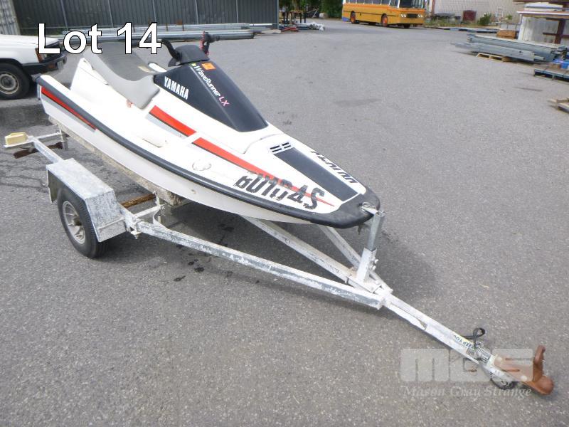 JET SKI, 1990 YAMAHA WAVE RUNNER LX, REG: BU 104S MOD: WR850D ENGINE NUMBER 6M6011973 HIN: YAM05699H990 LENGTH: 2.77, 630. CC W/ SINGLE AXLE TRAILER VIN:6FYP3500AMM354226 REG:TCN-534 BALL HITCH