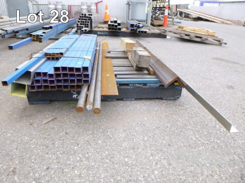 ASSORTED SIZED & LENGTHS PAINTED RHS STEEL, FLAT BAR, ROUND BAR, ANGLE & GALV ANGLE, 30 TO 250cm