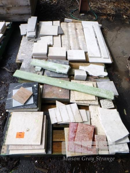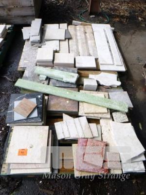 ASSORTED SLATE, MARBLE & TERRAZZO TILES & OFFCUTS & ASSORTED MARBLE MANTLES, OFFCUTS & CERAMIC TILES, 2 x PALLETS