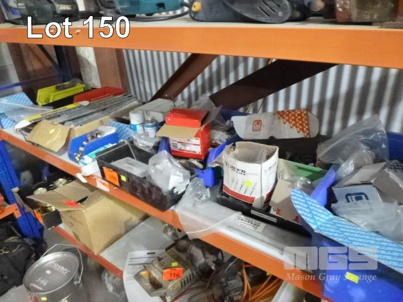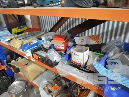 ASSORTED FASTENERS, PIPE FITTINGS, DRAWER SLIDES, PINS, ETC, 1 x SHELF