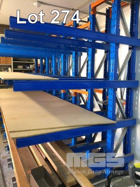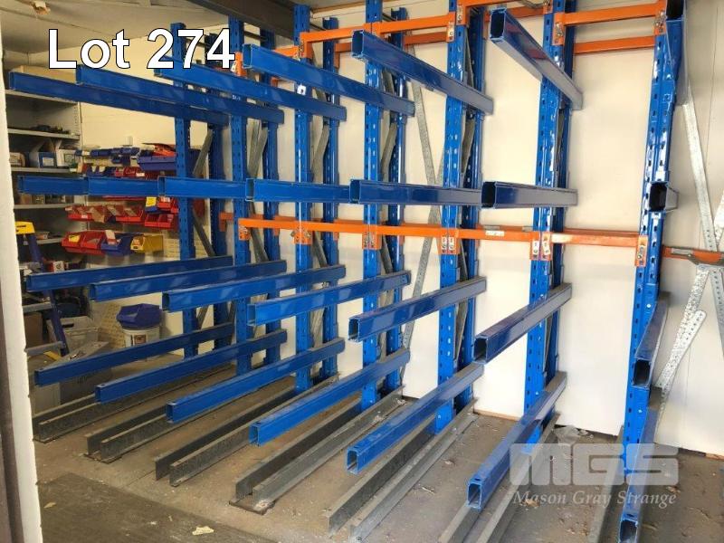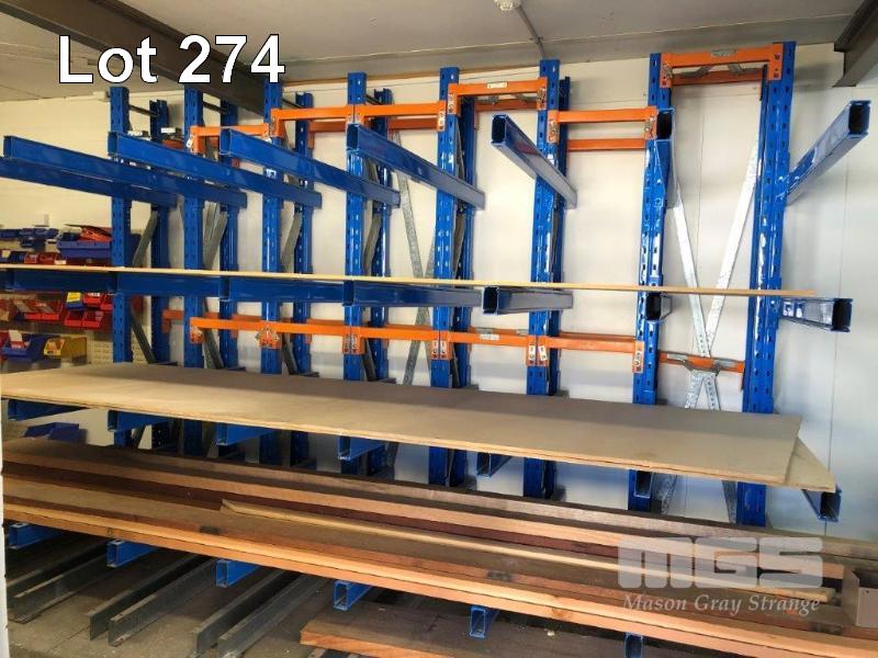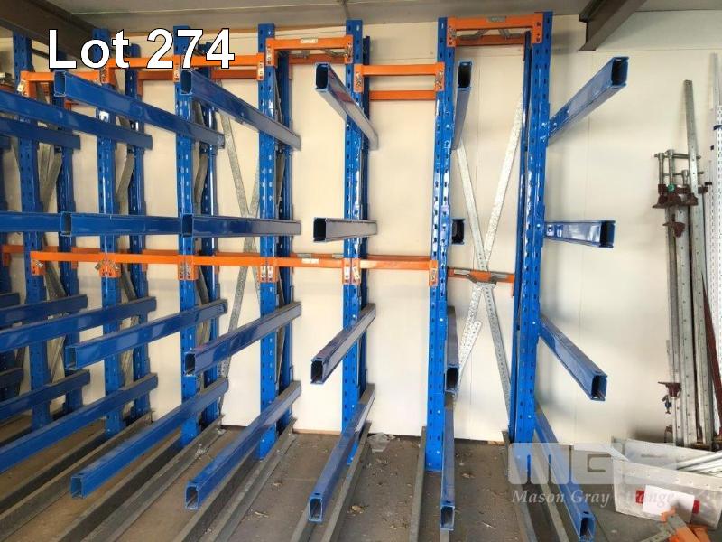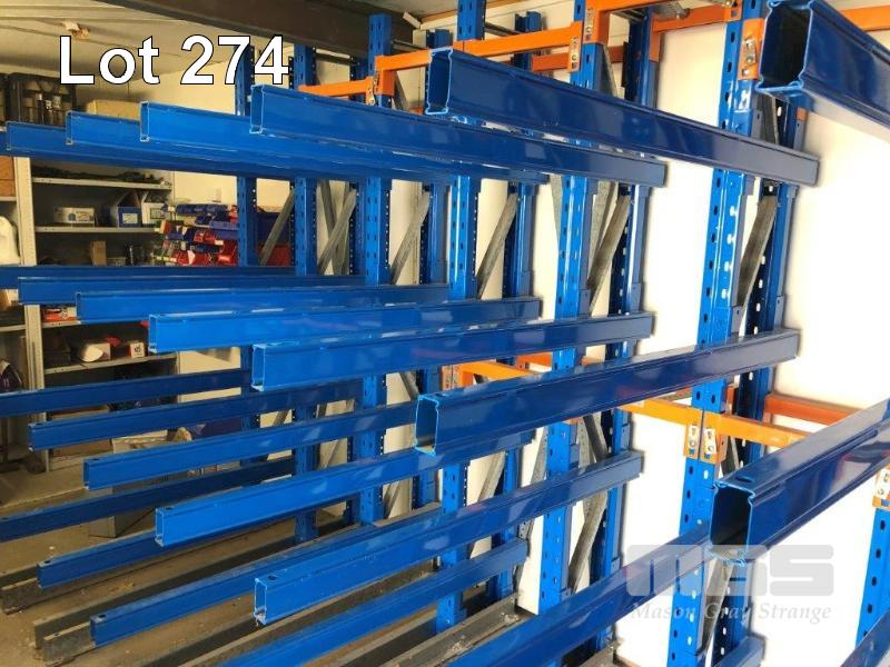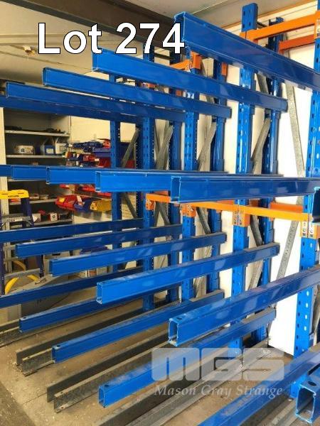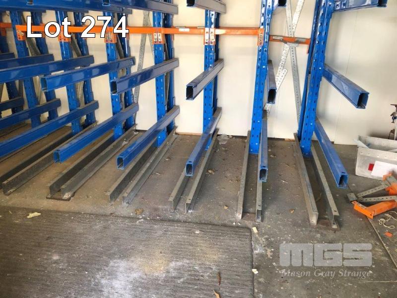 ADJUSTABLE CANTILEVER RACKING, DEXION 8 x UPRIGHTS, 253cm 32 x ARMS, 160cm 28 x CROSS BEAMS, 40cM WITH GALV BRACING, STRIPS, FEET & SHIMS (DISMANTLED FOR TRANSPORT)
