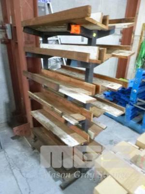 DOUBLE SIDED RACK, 6 TIER, STEEL FRAME RECLINED TIMBER SHELVES 90 x 55 x 165cm
