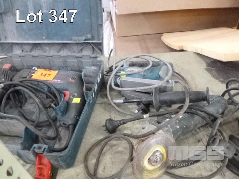 METABO 128mm ANGLE GRINDER, HEAT GUN & MAKITA JIGSAW & SDS HAMMER DRILL, BOSCH MOD: GBH-2-22RE 240V WITH CASE