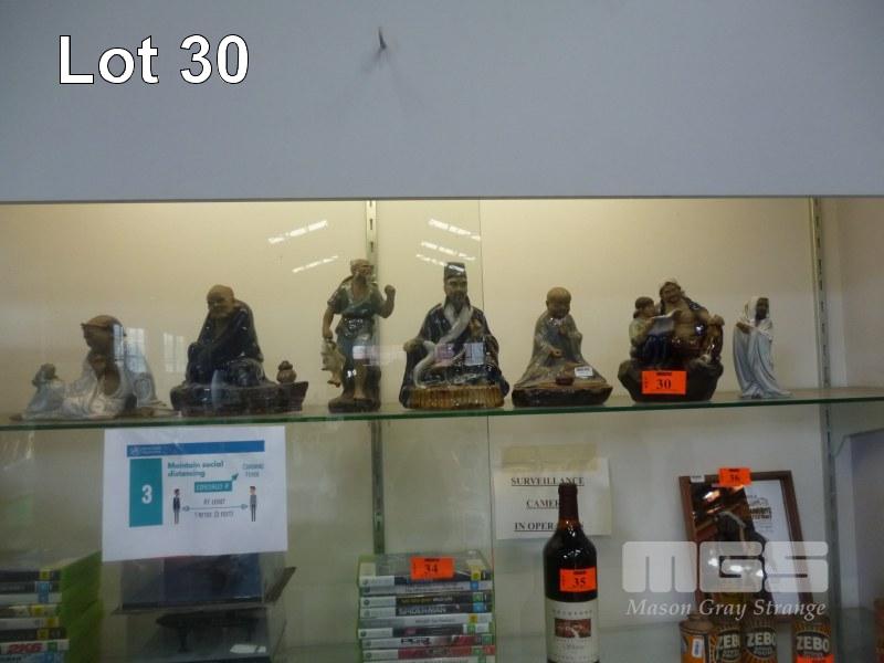 COLLECTION OF 7 x GLAZED ORIENTAL OLD MAN FIGURINES