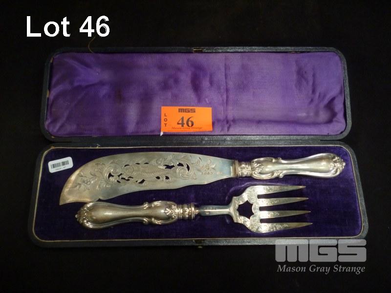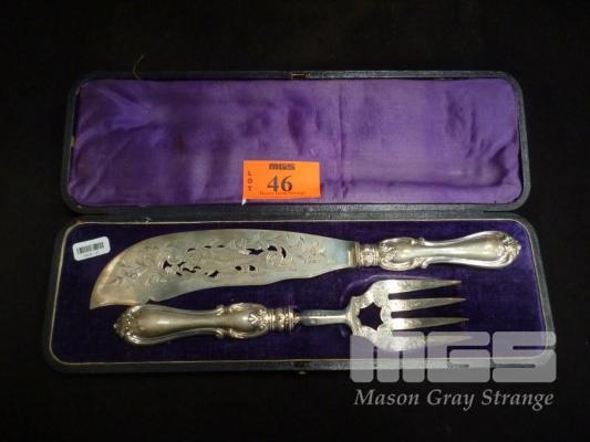 ORNATE STERLING SILVER, 2 PIECE SERVING SET, HALLMARKED IN CASE