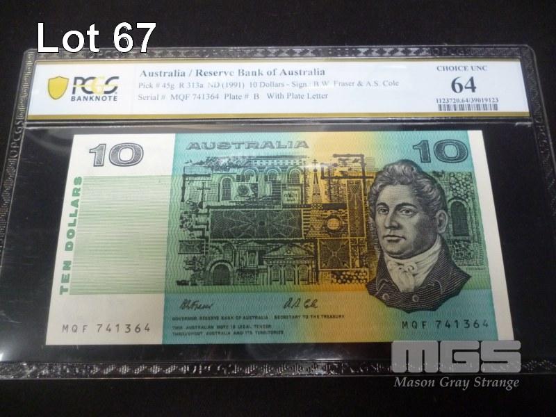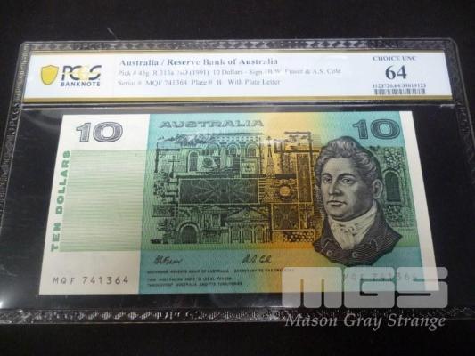 1991 $10.00 NOTE, FRAZER COLE PLATE LETTER "B" PCGS CHOICE UNC