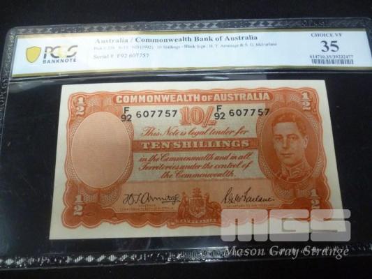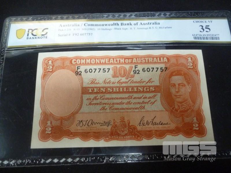 1942 10 SHILLING NOTE, ARMITAGE MCFARLANE, HIGH GRADE PCGS GRADED