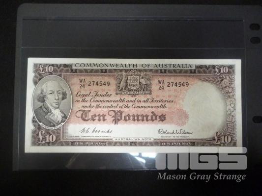1954 10 POUND AUSTRALIAN NOTE, COOMBS WILSON, APPEARS HIGH GRADE