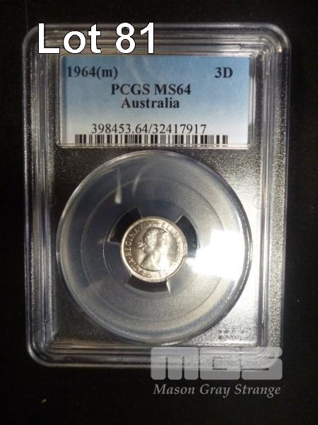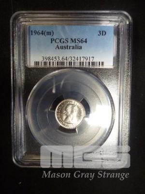 1964 AUST THREEPENCE PCGS CHOICE UNC 64