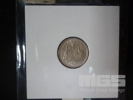 AUSTRALIA, 1910 THREEPENCE, (UNC), THE COIN WAS STRUCK IN AUSTRALIA'S FIRST YEAR OF ITS OWN CURRENCY. KING EDWARD VII APPEARED ON THIS COIN, THE ONLY YEAR HE WAS SEEN ON AUSTRALIAN CURRENCY