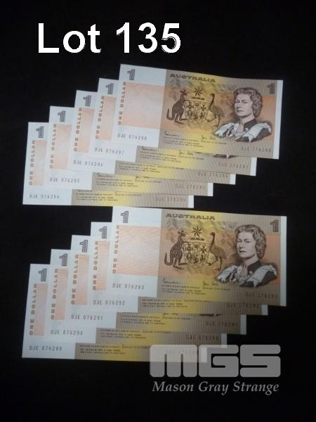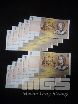 10 X AUSTRALIA, CONSECUTIVE, $1 BANKNOTES, JOHNSTON/STONE, DJE 076289-298 (UNC)