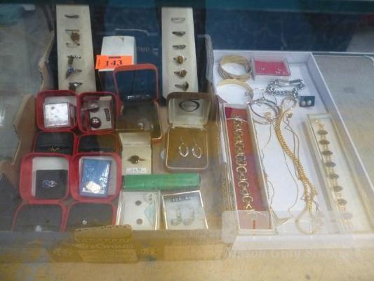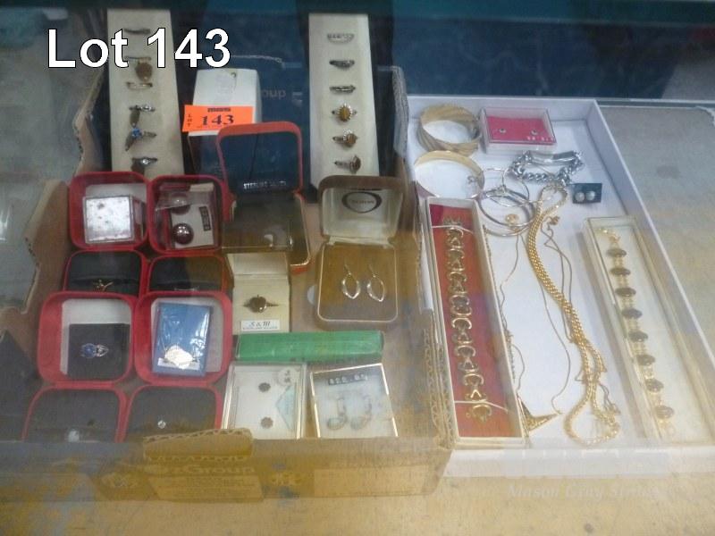 2 x TRAYS STERLING SILVER, GOLD PLATED & DRESS JEWELLERY