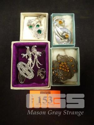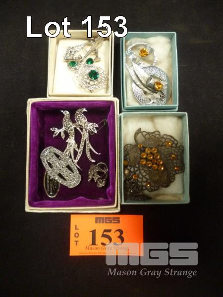 ASSORTED COSTUME & DRESS JEWELERY, INC; SILVER COLOURED BROOCH, EARRING SET, SCOTTISH THEMED BROOCHES DEPICTING THISTLE & FEATHERS, MARCASITE BROOCHES/EARRINGS SET, BROOCH WITH ORANGE STONES DEPICTING ROSES