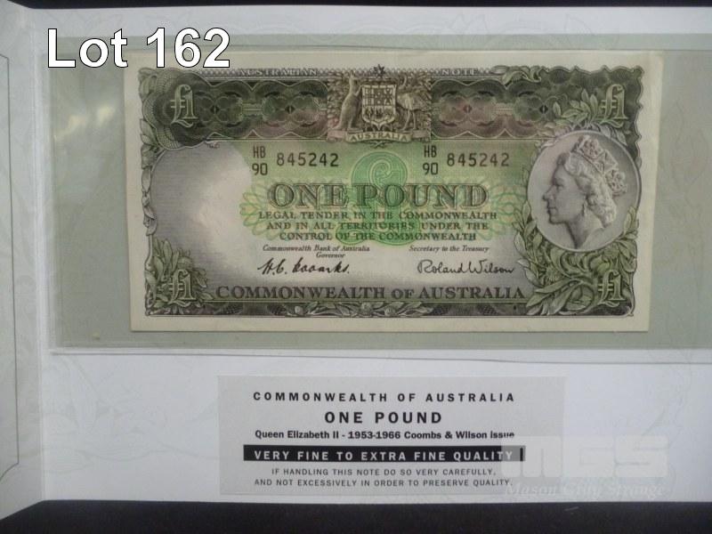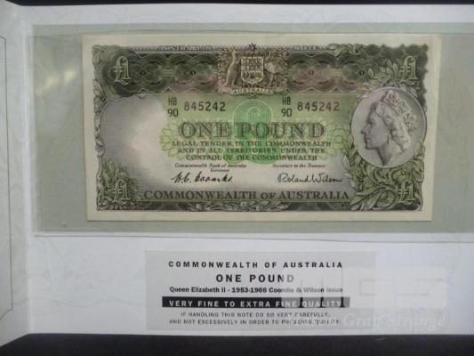 COMMONWEALTH OF AUSTRALIA, ONE POUND BANKNOTE IN COLLECTORS FOLDER, COOMBS/WILSON, HB90 845242 (VERY FINE)