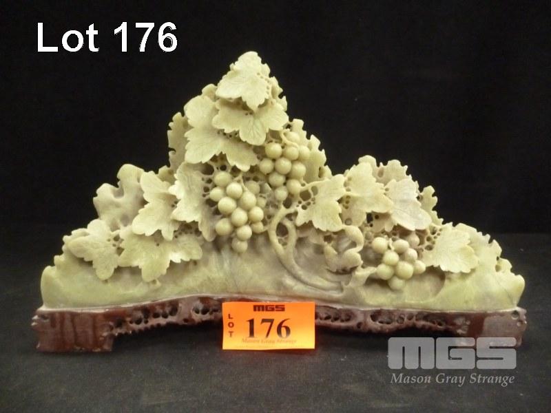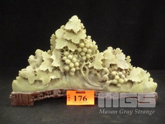 CARVED SOAP STONE ORNAMENT DEPICTING GRAPE VINES & GRAPES