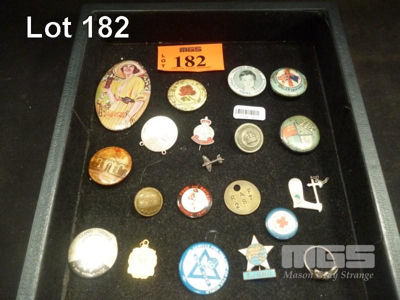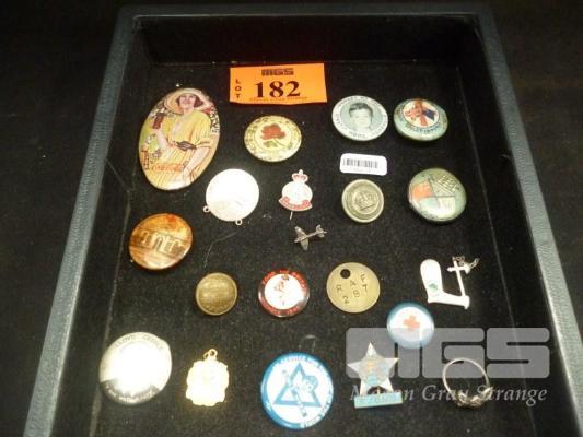 ASSORTED EARLY BADGES, PINS, BUTOONS, ETC