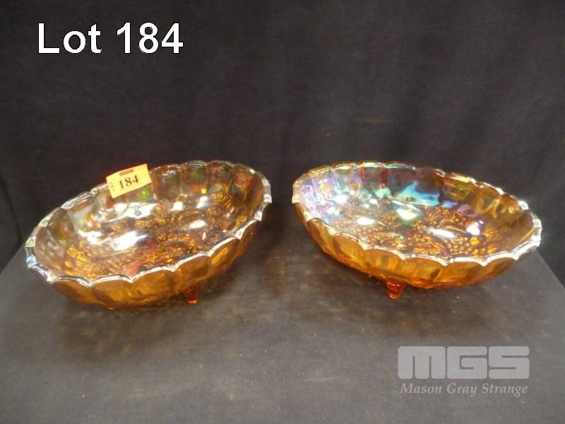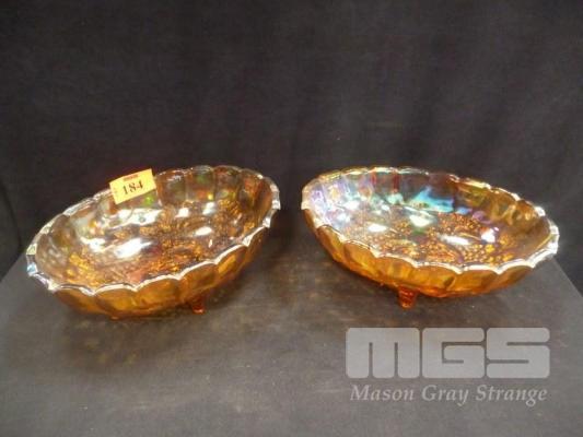 PAIR MARIGOLD CARNIVAL GLASS FRUIT BOWLS
