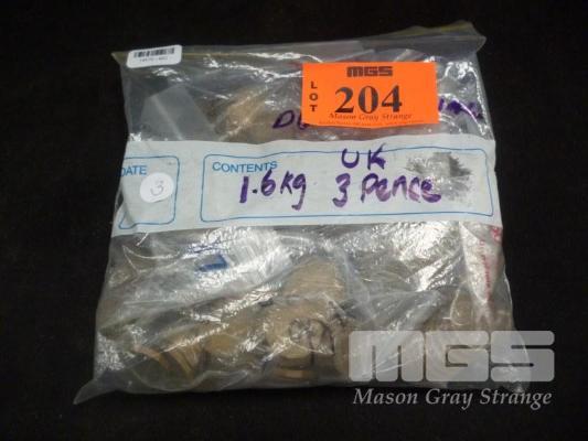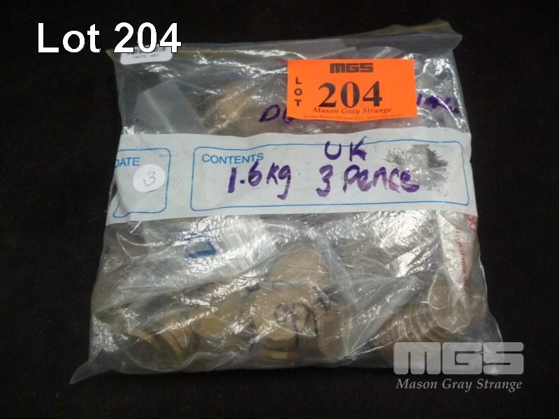 200+ UNITED KINGDOM 3 PENCE DODECAGONAL TYPE COINS, BAGGED TO YEAR