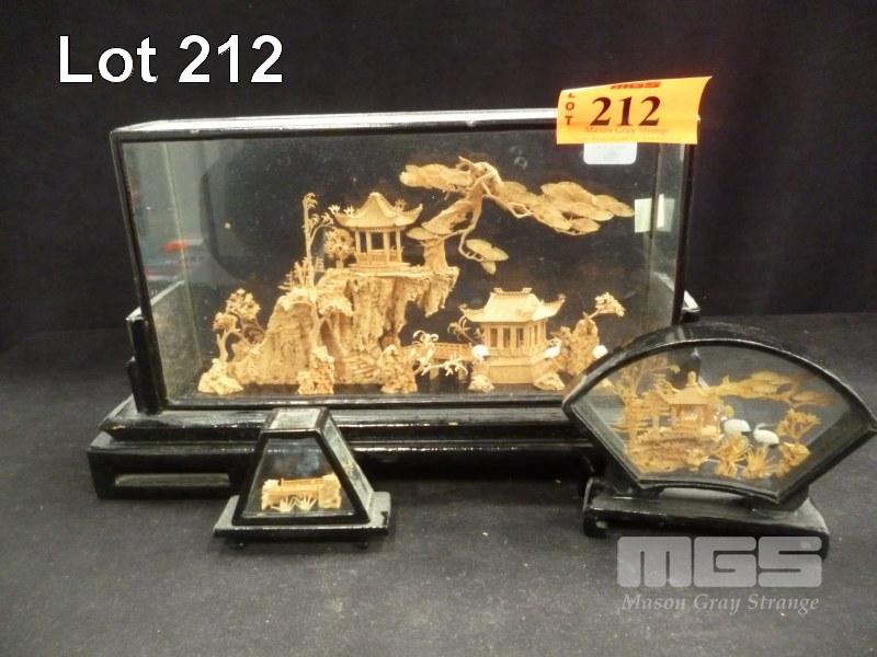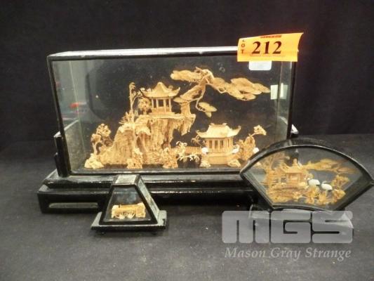 3 x ASSORTED ORIENTAL ENCASED CORK DIORAMAS