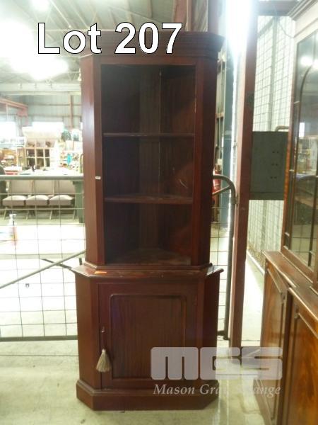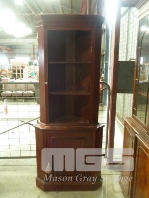 REPRODUCTION ANTIQUE MAHOGANY CORNER BOOKCASE WITH SINGLE DOOR UNDERSTORAGE