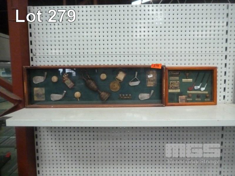 2 x GOLF MEMORABILIA WALL MOUNT DISPLAY CASED