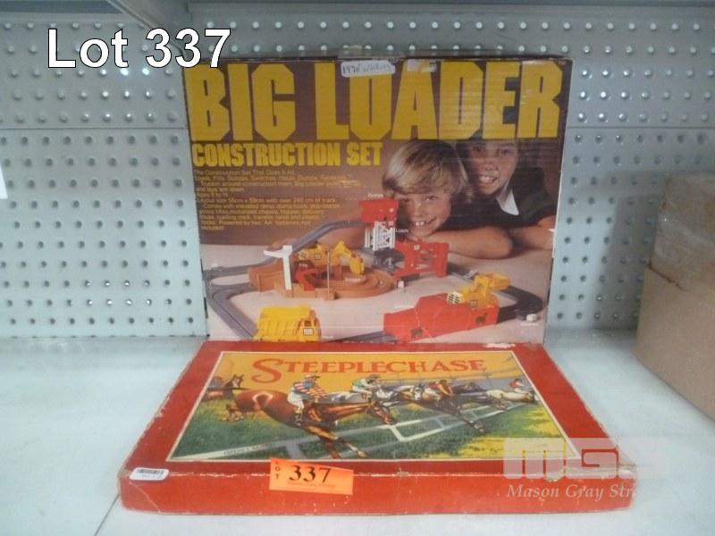 VINTAGE BOARD GAME, "STEEPLECHASE" & BIG LOADER CONSTRUCTION SET