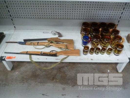 ASSORTED GLASS BEER STEINS & CHILDRENS TOY GUNS