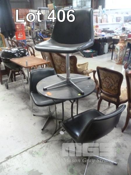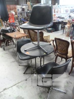 ROUND METAL OUTDOOR TABLE WITH 3 x RETRO BLACK VINYL SWIVEL CHAIRS