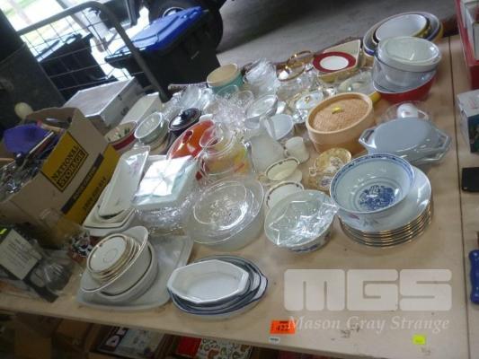 ASSORTED CERAMICWARE, GLASSWARE, ENAMEL COOKWARE, ETC