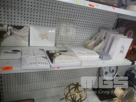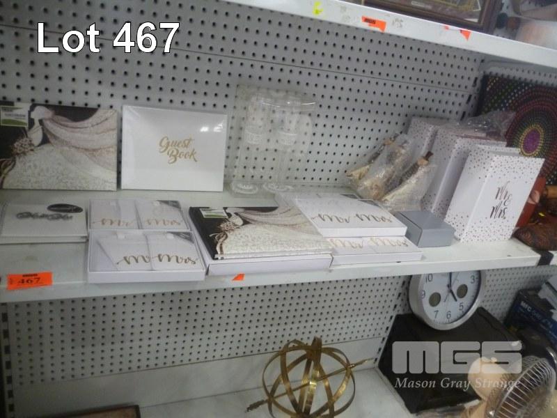 ASSORTED NEW WEDDING RELATED GIFTWARE, GUEST BOOKS, PASSPORT HOLDERS, LUGGAGE TAGS, FIGURINES ETC
