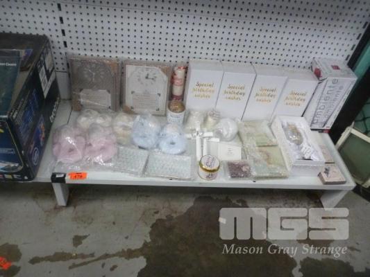 ASSORTED NEW GIFTWARE, BIRTHDAY WINE GLASSES, CLOCKS, PLUSH TOYS ETC