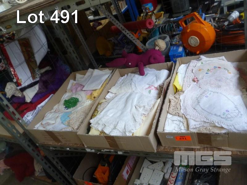 3 x BOXES ASSORTED LINEN, DOILIES, ETC