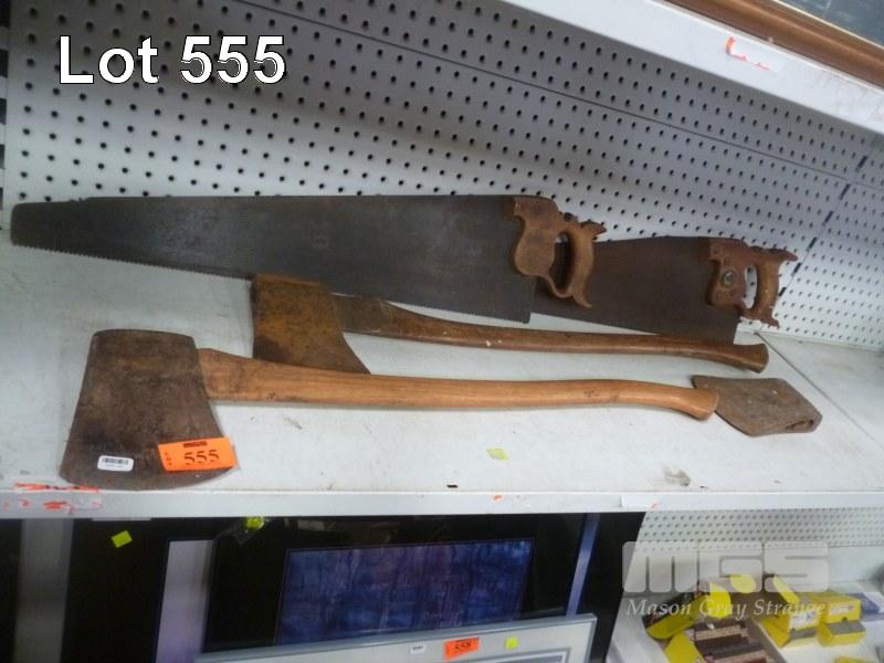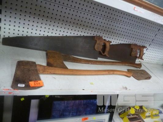 VINTAGE AXES, (INCLUDING PLUMB) & SAWS