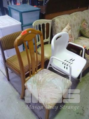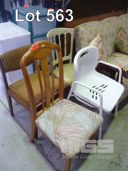 3 x ASSORTED DINING CHAIRS & SHOWER ASSIST CHAIR