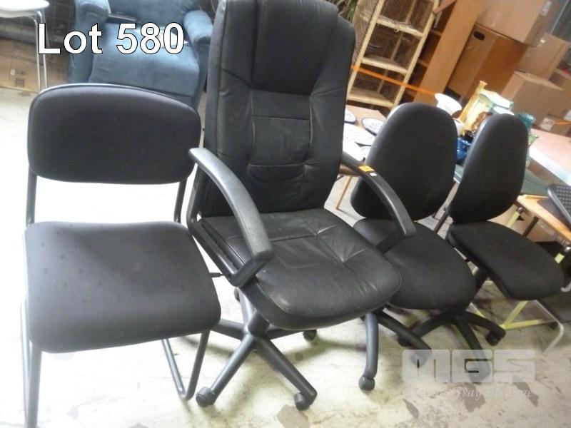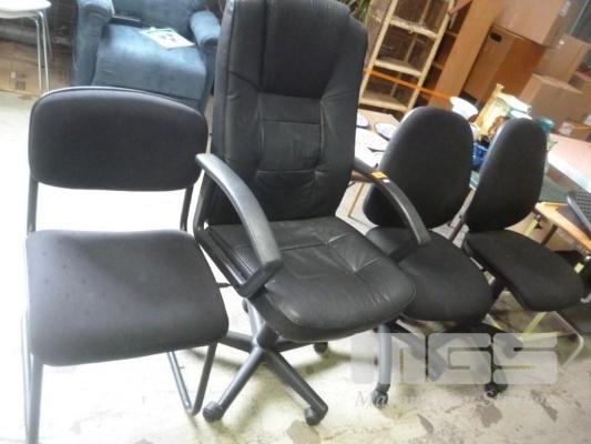 3 x BLACK GAS LIFT OFFICE CHAIRS, 2 x FABRIC, 1 x VINYL, 1 x VISITORS CHAIR