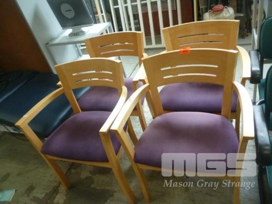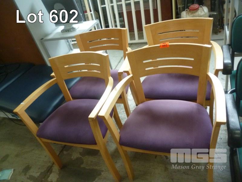 BEECHWOOD FRAMED VISITORS CHAIRS, PURPLE FABRIC UPHOLSTERED