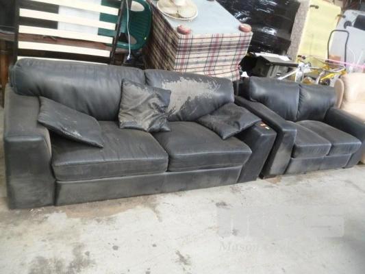 BLACK VINYL 2 PIECE LOUNGE SUITE, 2 SEATER & 3 SEATER