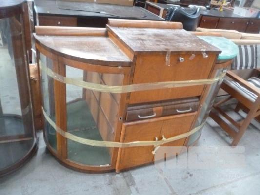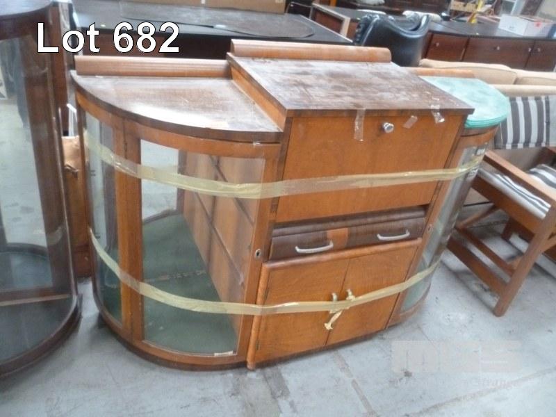 ART DECO DISPLAY/COCKTAIL CABINET, CURVED GLASS DOORS, MIRROR BACK, TIMBER VENEER