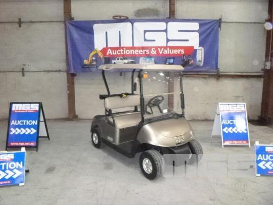 ELECTRIC GOLF CART, TEXTRON COMPANY E-Z-GO MOD: RXV 2 x SEATS, TWIN GOLF BAG RACK 48V, 4 x LEAD CRYSTAL 6-EVFJ-120 12V BATTERIES STERLING MOSS SILVER DUCO WITH DELTA TECHNOLOGIES QUIQ HF/PFC BATTERY CHARGER & SAND BOTTLE MINOR SCRATCHES & SEATING WEAR