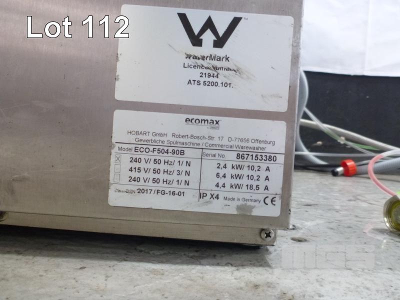 GLASSWASHER, HOBART ECOMAX MOD: ECO-F504-90B DOM: 2017 STAINLESS STEEL CASED, 240V