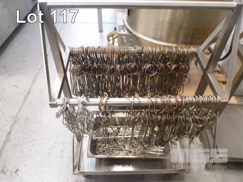 2 x STAINLESS STEEL HANGING DUCK TROLLEYS, 120 x 75cm