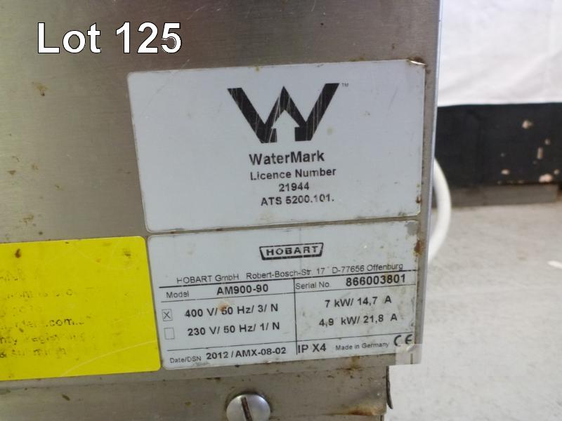 DISHWASHER, HOBART (NOT WORKING) MOD: AM900-90 DOM: 2012 STAINLESS STEEL CASED, 415V NOTE: REQUIRES 2 BOILER TANK ELEMENTS, RINSE ARM BUSHES & CONTACTORS