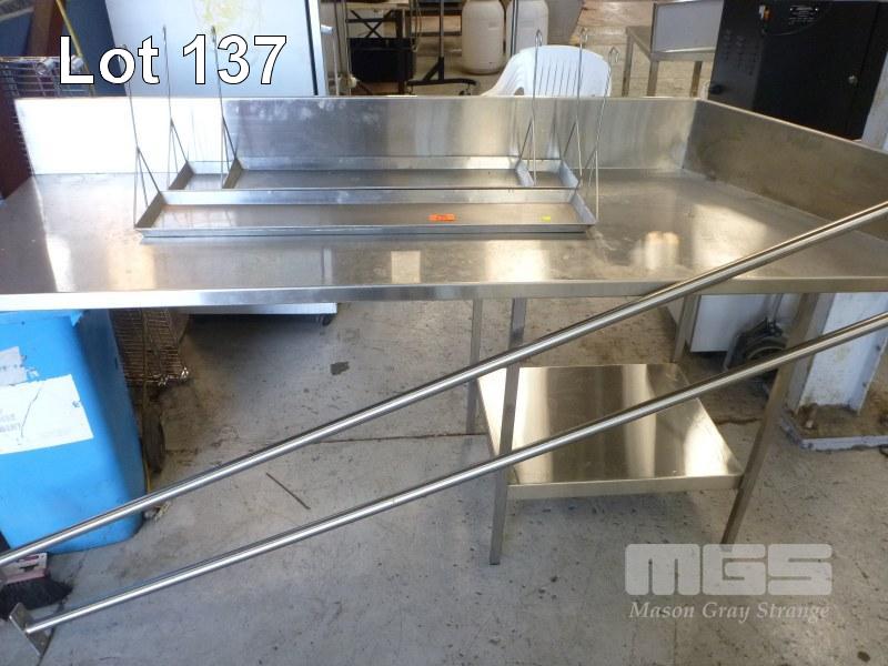 STAINLESS STEEL HANGING DUCK RAILS, 180cm,3 x HANGING SHELVES & IRREGULAR SHAPE BENCH 220 X 70CM