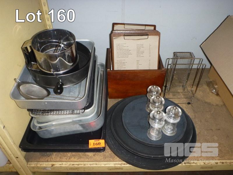 ASSORTED BAKING & SERVING TRAYS, SALT & PEPPER SHAKERS, ETC