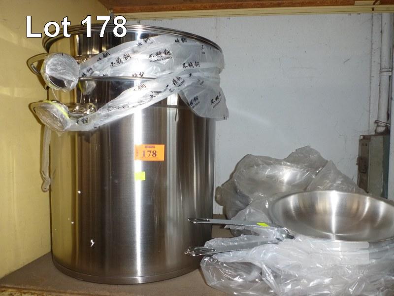 2 x STAINLESS STEEL STOCK POTS, 40cm & 10 x FRY PANS