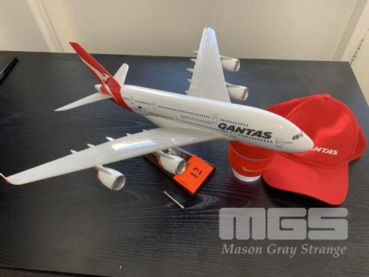 QANTAS AIRBUS A380-842 SCALE MODEL PLANE (CERAMIC FUSELAGE) WITH CAP & COFFEE KEEP CUP