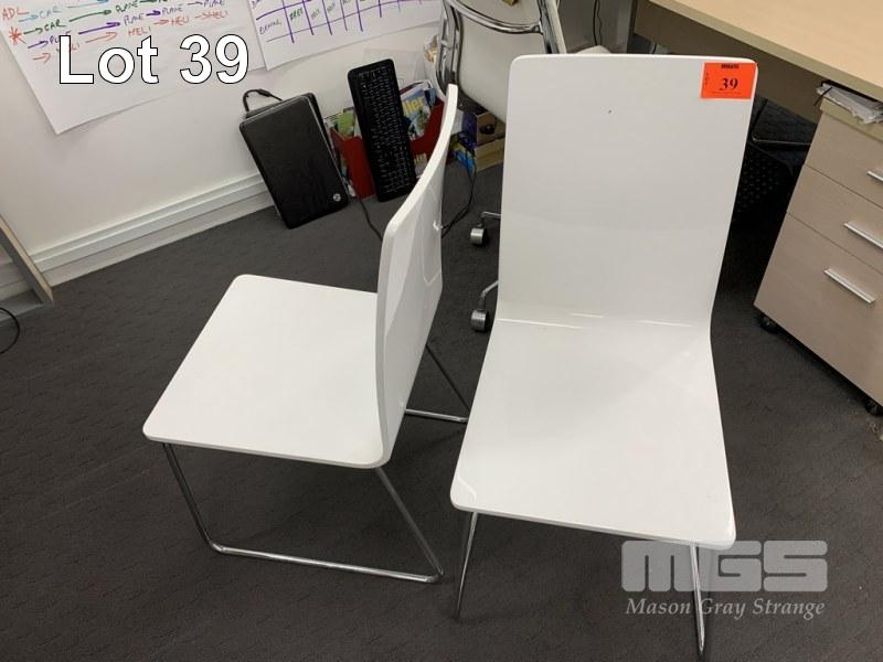 PAIR VISITORS CHAIRS, WHITE 2 PACK, CHROME STEEL BASE