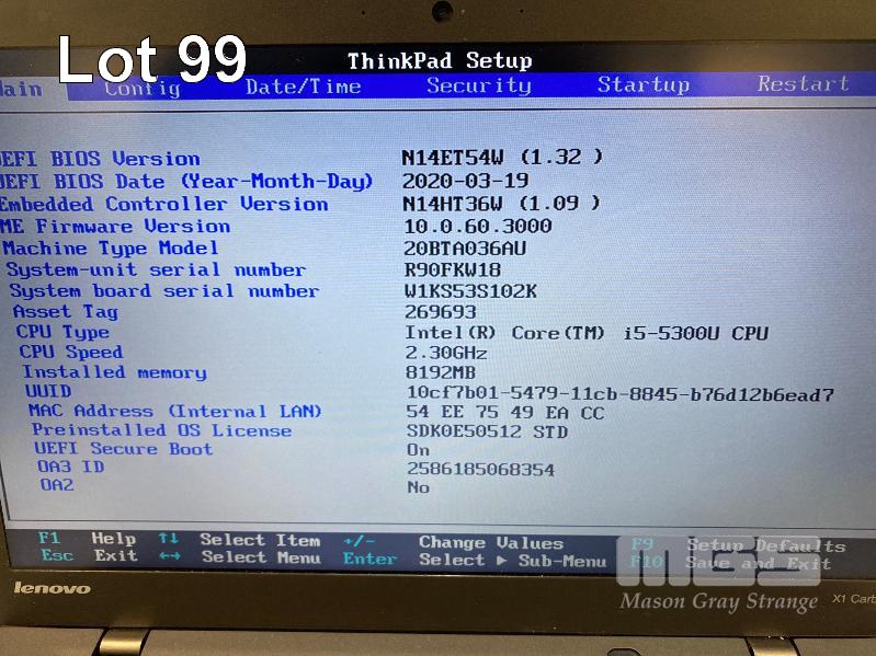 LAPTOP / ULTRABOOK, LENOVO THINKPAD X1 CARBON (20BTA036AU), CORE i5 5300U (5TH GEN) @ 2.3GHz, 8GB DDR3 RAM, 256GB SSD, 14" WIDESCREEN (1920x1080), INTEL HD VIDEO, Wi-Fi, BLUETOOTH, WINDOWS 10 HOME INSTALLED, ONELINK PRO DOCK & POWER SUPPLY S/N:R90FKW18