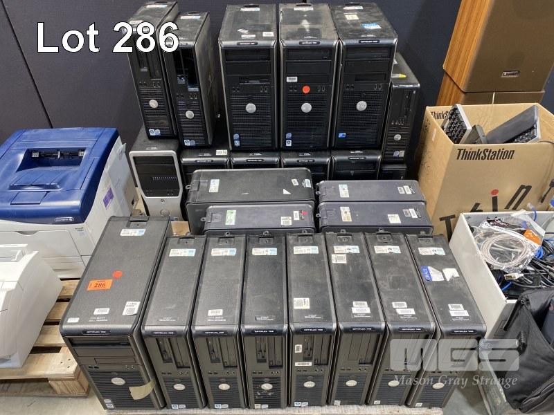 1 x PALLET LOT OF 23 x COMPUTERS INC. DELL T3500, INCOMPLETE, NO RAM, NO HDD DELL 760, CORE 2 DUO E7500 2.93GHz, 4GB RAM, 250GB HDD DELL 760, CORE 2 DUO E7500 2.93GHz, 4GB RAM, NO HDD DELL 760, UNKNOWN, 4GB RAM, NO HDD (FAULTY) DELL 760, UNKNOWN, 4GB RAM, NO HDD (FAULTY) DELL 755, CORE 2 DUO E4500 2.2GHz, 1GB RAM, 80GB HDD DELL 760, CORE 2 DUO E7400 2.8GHz, 2GB RAM, NO HDD DELL 755, CORE 2 QUAD Q6600 2.4GHz, 8GB RAM, 250GB HDD DELL 755, CORE 2 DUO E7200 2.5GHz, 2GB RAM, NO HDD DELL 755, CORE 2 DUO E6550 2.3GHz, 2GB RAM, NO HDD DELL 755, CORE 2 DUO E8400 3GHz, 2GB RAM, 250GB HDD DELL 755, CORE 2 QUAD Q6600 2.4GHz, 4GB RAM, 250GB HDD DELL 755, UNKNOWN, 4GB RAM, NO HDD (FAULTY) DELL 740, AMD ATHLON 64 X2 2.6GHz, 2GB RAM, 250GB HDD DELL 740, AMD ATHLON 64 X2 2.6GHz, 4GB RAM, NO HDD DELL 740, AMD ATHLON 64 X2 2.6GHz, 4GB RAM, 250GB HDD DELL GX620, PENTIUM D 3.2GHz, 2GB RAM, NO HDD DELL GX620, UNKNOWN, 2GB RAM, NO HDD (FAULTY) DELL GX620, P4 3.4GHz, 2GB RAM, 250GB HDD DELL 760, UNKNOWN, 4GB RAM, NO HDD (FAULTY) DELL 755, CORE 2 QUAD Q6600 2.4GHz, 4GB RAM, 250GB HDD DELL 745, PENTIUM D 3GHz, 1GB RAM, 80GB HDD DELL 755, CORE 2 DUO E6550 2.33GHz, 4GB RAM, NO HDD (NO CABLES) S/N:1SCY42S, 5WDM32S, 7WDM32S, 1ZCM32S, FYCM32S, DCPKT1S, HV9412S, 8824V1S, 6N1TY1S, 699XV1S, JMJSZ1S, DB51V1S, C2FKW1S, 5Z5NN1S, HY9TM1S, DY9TM1S, 7NVHL1S, 7P5WL1S, 6MHBM1S, 8WDM32S, 9824V1S, 19K3P1S, FKVBT1S