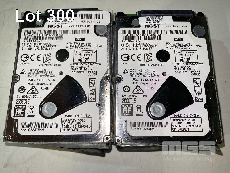 10 x 500GB SATA HARD DRIVES, 2.5", HGST Z7K500-500